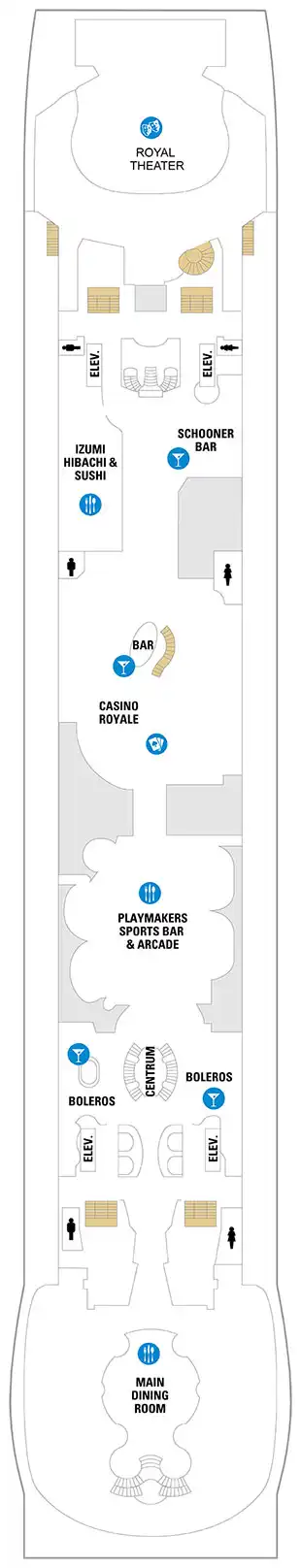 Two bedrooms. Master bedroom with two twin beds that convert to Royal King. Second bedroom has one double bed and two Pullman beds. Two bathrooms (master one with bathtub), living area with double sofa bed, private balcony and concierge service. Stateroom: 548 sq. ft. Balcony: 86 sq. ft.