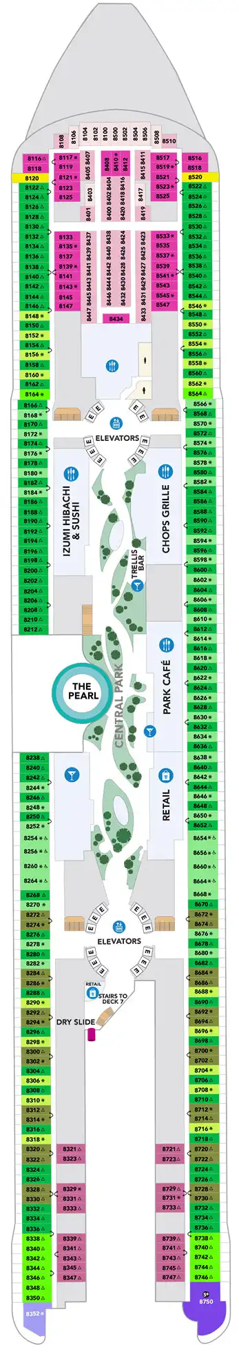 Exclusive Star Class amenities Exclusive access to the Suite Sun Deck Exclusive access to Royal Genie service All-day access to Coastal Kitchen Complimentary specialty restaurants Complimentary premium beverage packages (for guests 21 years and older) Complimentary Royal replenishment package (for guests under 21) Gifts Free VOOM